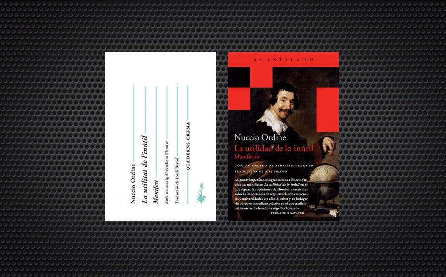 Ens els temps que corren són imprescindibles veus com la del professor Nuccio Ordine que ens recordin La utilitat de l’inútil, títol del seu llibre publicat per Quaderns Crema i Acantilado. El propòsit del seu manifest, com explica en la introducció, és reflexionar sobre la utilitat de tots aquells sabers que tenen un valor aliè a qualsevol finalitat utilitarista i que, en canvi, de manera desinteressada reporten uns enormes beneficis al desenvolupament de l’esperit humà i, per extensió, a la societat. Desgraciadament, el món actual es regeix més que mai per la lògica perversa del benefici material immediat, per uns criteris econòmics que ens porten a un empobriment dràstic de la immensa majoria de la població en l’aspecte material però també de la cultura, les humanitats, l’art i totes aquelles disciplines humanístiques, fins al punt que fins i tot la recerca científica es veu amenaçada. Un malèvol mecanisme econòmic instal·lat en la societat, l’educaciò i la universitat que, com molt bé diu el professor Ordine, “ha donat vida a un monstre, sense pàtria i sense pietat, que acabarà negant també a les futures generacions qualsevol forma d’esperança”.