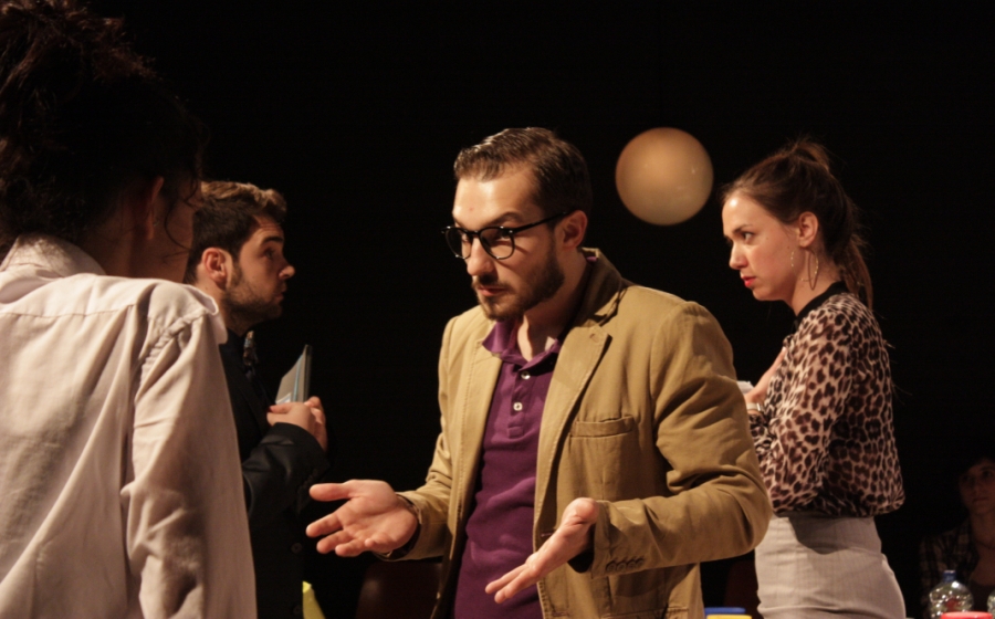En altres paraules, aquesta història ja està inventada, no aporta res de nou, però a més, malauradament l’argument no s’aguanta. Partim de què és fàcil que els que hem vist aquestes pel·lícules tinguem una sensació de déjà vu constant, però és que a mesura que avança la història, tot es va fent una mica més surrealista fins arribar al disbarat. Un crim comès per un dels membres fa que els personatges comencin a comportar-se de manera excessiva i estranya. Per exemple, demanen, entre el públic, alguns voluntaris per ajudar-los a camuflar els fets (no dos ni tres, sinó dotze, quinze). Em pregunto: realment calia? Però si fan baixar-los a l’escenari per moure quatre caixes o portar alguns estris que no afegeixen absolutament res a l’argument (ni els utilitzen!). Posen un davantal a alguns voluntaris, uns guants, els fan passejar i, apa, a seure un altre cop. Realment m’ho pregunto: per què? I també em qüestiono: això de posar a cada butaca una còpia del contracte de compra de l’habitatge del Biel, afegir l’ordre del dia de la reunió i unes paperetes per a què el públic també voti en un moment donat… per a què? Perquè crec que no aporta res a la història, que l’espectacle continuaria pel mateix camí si els espectadors no intervinguessin. Entenc que Mallol vol fer que els assistents se sentin partícips de la història, però crec que més que ajudar, perjudica al conjunt de l’obra. Ho fa tot més insostenible.