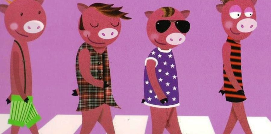 Llegint Els quatre porquets, trobarem la coneguda història dels porquets i el llop però amb alguns girs que valen la pena. Els personatges, que en comptes de tres són quatre, són cantants de rock i les seves fans bojament enamorades no són altres que les princeses i protagonistes que ja coneixem: la caputxeta vermella, la ventafocs o les set cabretes entre d’altres. El conte es desenvolupa més o menys com l’original, amb el llop bufant cada una de les cases dels porquets però al final és quan es capgira la història. No seran els propis porquets qui solucionaran el problema, sinó la caputxeta vermella amb l’experiència adquirida en la seva pròpia història. El llibre està il·lustrat per Noe Bofarull, amb imatges modernes que acompanyen perfectament al text.