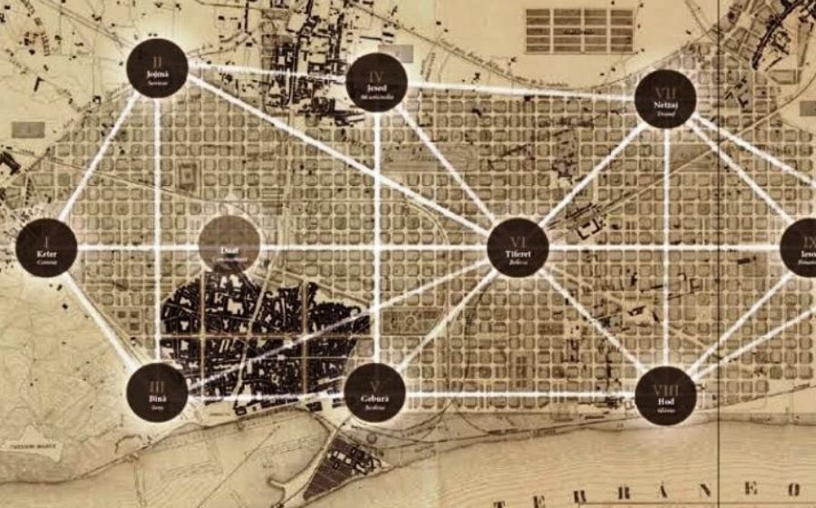 Quant a la segona hipòtesi, remarca que els maçons, i Cerdà -enginyer i humanista- entre ells, estaven a l’avantguarda de la lluita per la llibertat i la democràcia, i que es nodrien de diverses tradicions on la influència de les religions i filosofies orientals hi era molt present. Per tant, en aquest treball es planteja la interessant hipòtesi que “el traçat de l’Eixample respon a diverses lògiques, entre les quals la influència de la càbala, i que per plantejar la seva proposta urbana, Cerdà va prendre com a referència l’arbre sefiròtic” (que tanta importància, recordem-ho, té en l’obra de Salvador Espriu). Cerdà va integrar en el seu projecte urbanístic la dimensió simbòlica cabalística, els principals camins romans de l’antiga ciutat, les aportacions dels enginyers del segle XVIII i hi va sumar, a més a més, el discurs de criteris higienistes, igualitaris i de justícia social més avançats de la seva època, en un projecte que es pot considerar absolutament revolucionari.