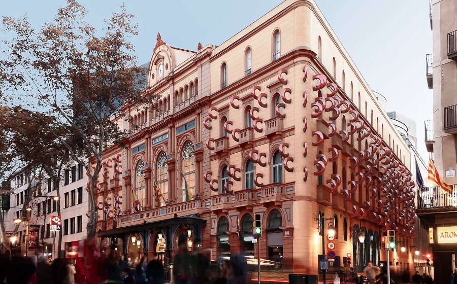 Ara bé, la instal·lació artística que ha dissenyat Frederic Amat per a les façanes de la Rambla i del carrer Sant Pau crea polèmica, ja que consisteix en 170 anells de color vermell incrustats a les façanes i això no ha acabat d’agradar del tot, ni tan sols ha convençut a l’Ajuntament de Barcelona. Segons Amat, aquesta intervenció dóna a les façanes un caràcter majestàtic. Per si algú encara no ho sap, Amat és l’autor de les agulles rematades per pupil·les que tant destaquen a la façana de l’Ohla Hotel de la Via Laietana.
