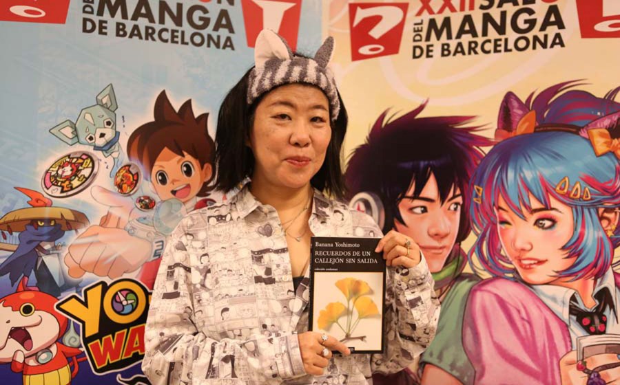 Banana Yoshimoto és el pseudònim de Mahoko Yoshimoto (Tokio, 1964), una de les escriptores japoneses més internacionals, comparada moltes vegades amb Haruki Murakami. Va debutar amb Kitchen (Tusquets), quan encara era una estudiant universitària. Entre els seus llibres, destaquen Records d’un carreró sense sortida, N.P. o Tsugumi, tots ells publicats a Tusquets. Els temes recurrents en la seva obra són el desencís, l’amistat, l’amor, la soledat, la mort i l’esperança. Un viaje llamado vida (Satori) és el darrer llibre que s’ha traduït al castellà, on reconstrueix les emocions de l’existència (promeses i trobades, felicitat, sorpreses, malenconia, mal) a partir d’un aroma, d’un sabor, de l’efecte d’unes llums o del rumor de la pluja i del vent. Yoshimoto arriba a Barcelona per participar al Saló del Manga, festival que ha rebut més de 142.000 visitants aquest 2016. Es mostra molt atenta a les preguntes, encuriosida pel que li comentem. Asseguts al seu costat en el moment de l’entrevista hi ha, a més de la intèrpret, dos japonesos que prenen notes constantment i fan fotos.