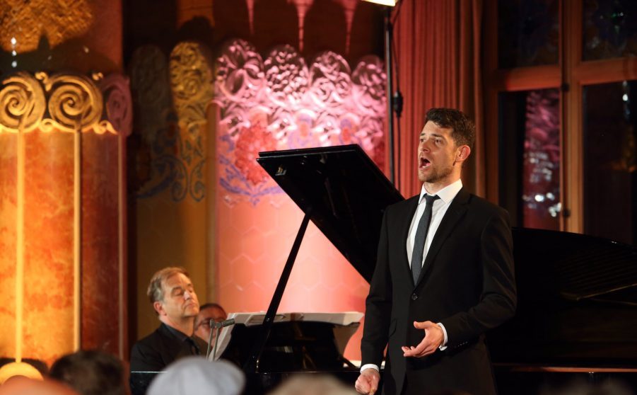 Després va venir una digníssima introducció de Lieder de Brahms i Clara Schumann, a càrrec de la mezzosoprano Anna Gomà i el jove pianista Èric Varas, els quals van donar pas al plat fort de la nit: escoltar la imponent veu de Martin Hässler i el piano de Julius Drake. Drake va expressar el seu agraïment al festival, ja que per a ell era molt especial tocar aquell flamant Steinway, propietat de Victoria de los Ángeles, donat que va coincidir amb la soprano catalana en un escenari fa vint-i-cinc anys. I el cert és que aquell agraïment es va convertir en tota una lliçó interpretativa, executada amb gran solvència i elegància, demostrant una absoluta complicitat amb el cantant. Una de les coses boniques d’un recital a la Sala Domènech i Montaner del Recinte Modernista de Sant Pau és que pots seure a escassos quatre metres de l’escenari i veure amb detall cada cosa que passa, cada moviment de les mans, dels peus, cada expressió i cada mirada.