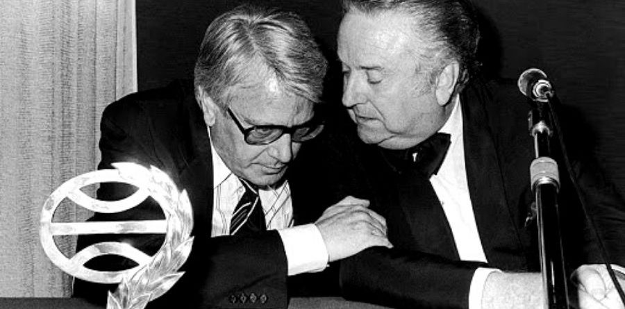 L'escriptor Jorge Semprún (esquerra) amb el fundador de Planeta, José Manuel Lara Hernández.