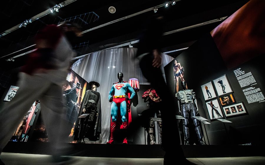 Hi podem trobar obres de dissenyadors importants, com Chanel, Saint Laurent o Pierre Cardin, així com vestits que vam veure lluir a gent rellevant del cinema com ara Audrey Hepburn, Sharon Stone i d’altres, però també els vestits de Superman o la màscara del Zorro També cartells de cinema i breus projeccions audiovisuals. La mostra ha passat recentment per Madrid, i Gaultier ofereix també referents al context espanyol, amb figures com Almodóvar, Balenciaga o Sara Montiel.