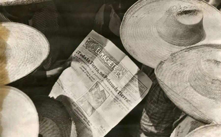 Detall de la fotografia de Tina Modotti 'Homes llegint' (1929).
