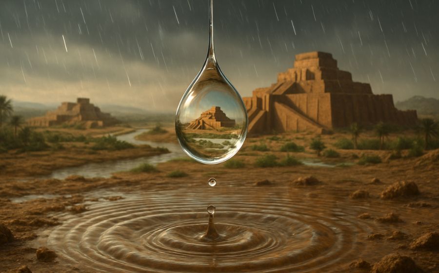 Narin, el tercer personatge important, és una nena que el 2014 viatja amb la seva àvia a una regió iraquiana controlada per l’Estat Islàmic per ser batejada seguint el ritual de la religió yazidí, considerada una creença a erradicar pels extremistes. Són tres persones que, d’alguna manera, no encaixen en el seu entorn. L’element que fila els tres relats és l’aigua, un gota de pluja que cau del cel, s’evapora, torna a pujar i torna a caure durant centenars d’anys. És una mena de testimoniatge de les grandeses i les misèries de la humanitat al llarg de la història.