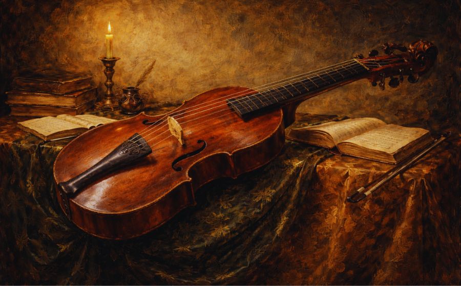 El punt de partida és la mort de la dona de Sainte-Colombe, un esdeveniment que no funciona com a simple antecedent argumental, sinó com a nucli ontològic del relat. Des d’aquest moment, la vida del músic queda travessada per una absència irreversible. Sainte-Colombe no supera el dol: hi habita. I és precisament aquesta manera d’habitar la pèrdua la que defineix la seua relació amb la música. La viola de gamba no és, per a ell, un instrument de lluïment ni d’ascens social, sinó una forma de persistència del vincle amb allò perdut. Tocar és recordar, però no en el sentit banal de la nostàlgia, sinó com una fidelitat radical a una experiència que no admet substitució.